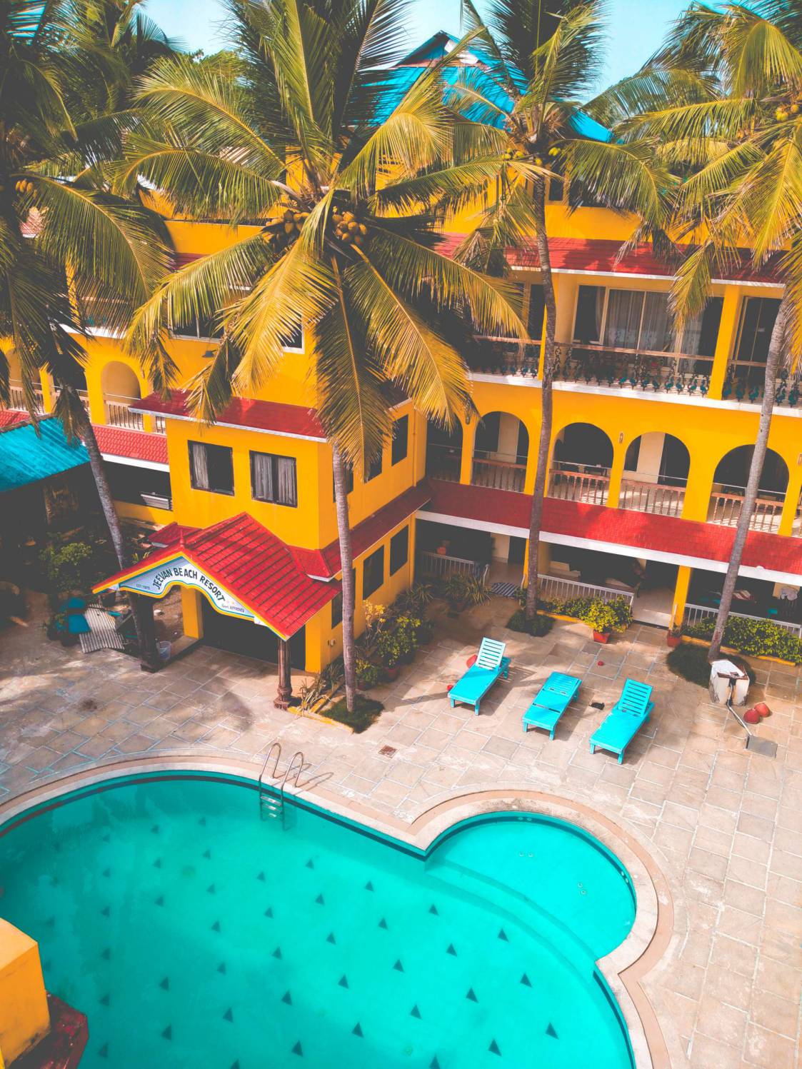 Jeevan Ayurvedic Beach Resorts is one of the cutest beach front resorts in Kovalam. in Meandering pathways amidst breezy coconut palms lead to the rooms. Privacy, relaxation, and rejuvenation await you at this retreat. The Jeevan Ayurvedic Beach Resort is just a home away from home but the reality is you are just five metres away from the beach. This Greco Mediterranean inspired resort will slow down your time to a tranquil tempo. Flower lined patios and a sunshine laden swimming pool make for perfect romantic or family holiday